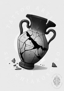 Fractured Form Tattoo Design | Blackwork Ceramic Realism by Edi – The Ink Factory Dublin