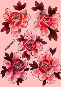 Red Peonies Tattoo Design | Classic Floral Flash by Ash Sheridan — The Ink Factory Dublin