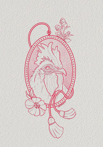 Rooster Brooch Tattoo Design | Ornate Symbolic Flash by Ash Sheridan — The Ink Factory Dublin