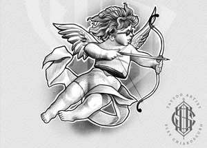 Rebel Cupid Tattoo Design | Winged Cherub with Sunglasses by Edi – The Ink Factory Dublin