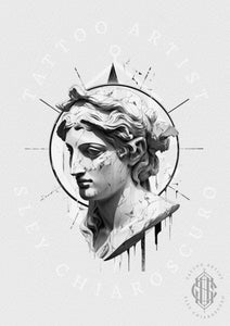 Divine Fracture Tattoo Design | Cracked Classical Bust by Edi – The Ink Factory Dublin
