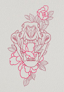 Dog Skull Peony Tattoo Design | Botanical Gothic Flash by Ash Sheridan — The Ink Factory Dublin