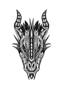 Dragon Head Tattoo Flash | Fierce Mythic Blackwork by Mateus Luis — The Ink Factory Dublin